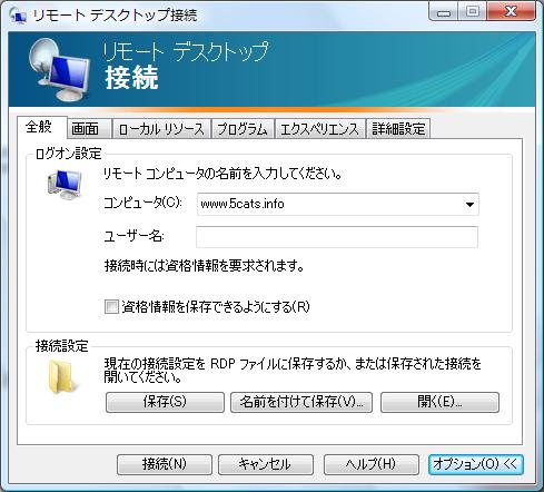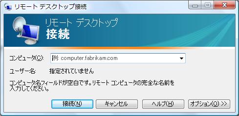 リモートデスクトップ接続を起動し、接続画面の右下の「オプション」をクリックします。